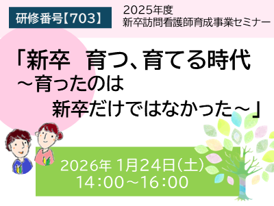 研修情報一覧 すべてのカテゴリー 新卒訪問看護師等 新任訪問看護師等 ジェネラリスト 訪問看護管理者等 その他研修 更新日 : 2025.11.11 2025年度 新卒訪問看護師育成セミナー 詳細 関連ページ 研修要領 オンライン研修受講について Zoomチャレンジ体験